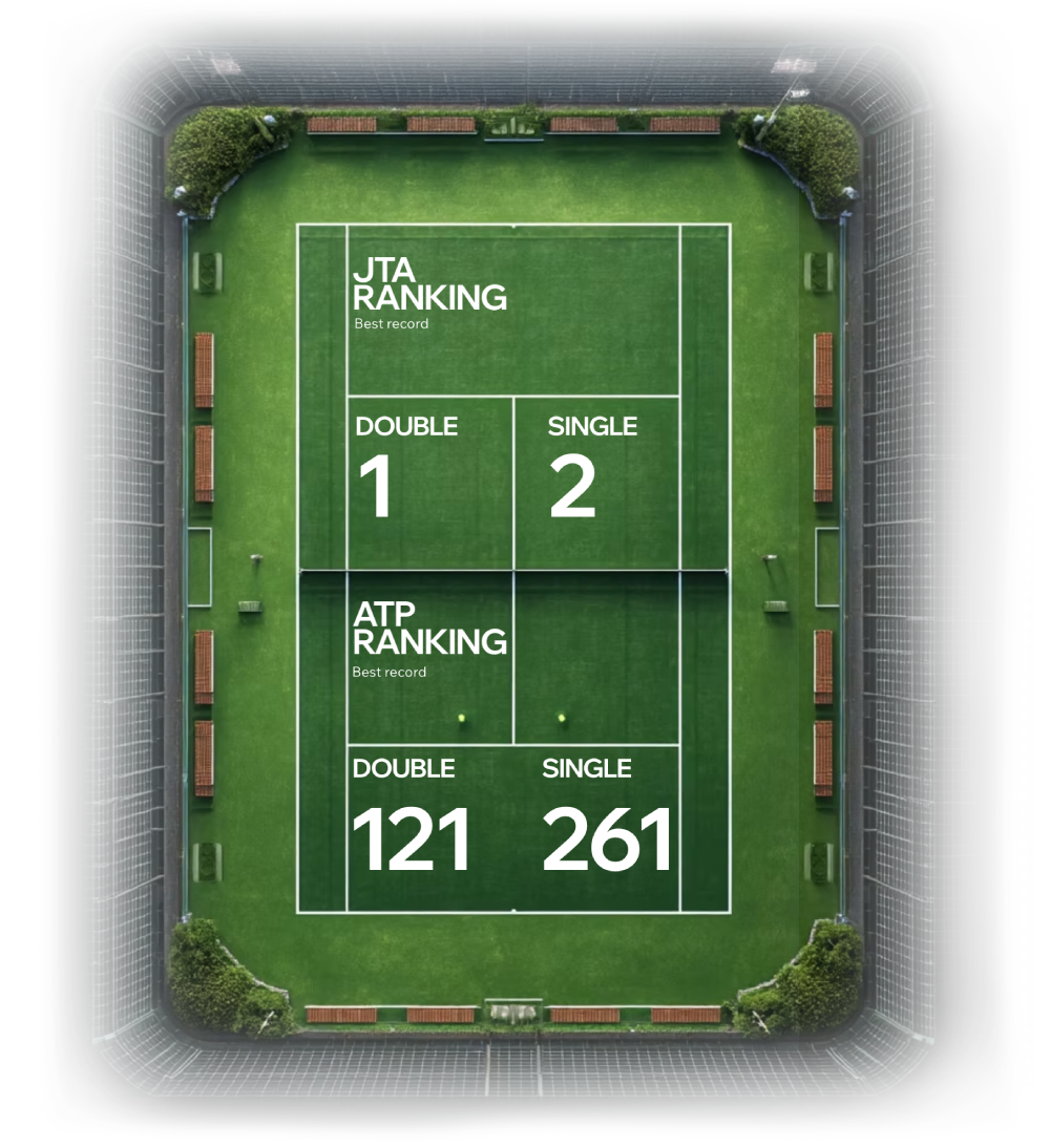 千葉県柏市出身。プロテニス選手として25年以上のキャリアを持ち、46歳でATPダブルス自己最高ランキング121位を記録。テニスを通じて培った「可能性を信じる姿勢」と「楽しむ心」は、競技の枠を超えて多くの人に勇気を与えている。2026年のテーマは「One More Roar」。怪我を乗り越え、シングルスでは、歴代最年長ATPランカーの更新、ダブルスでは、グランドスラム、全日本選手権V7への挑戦を目指し、今もなお進化を続ける。